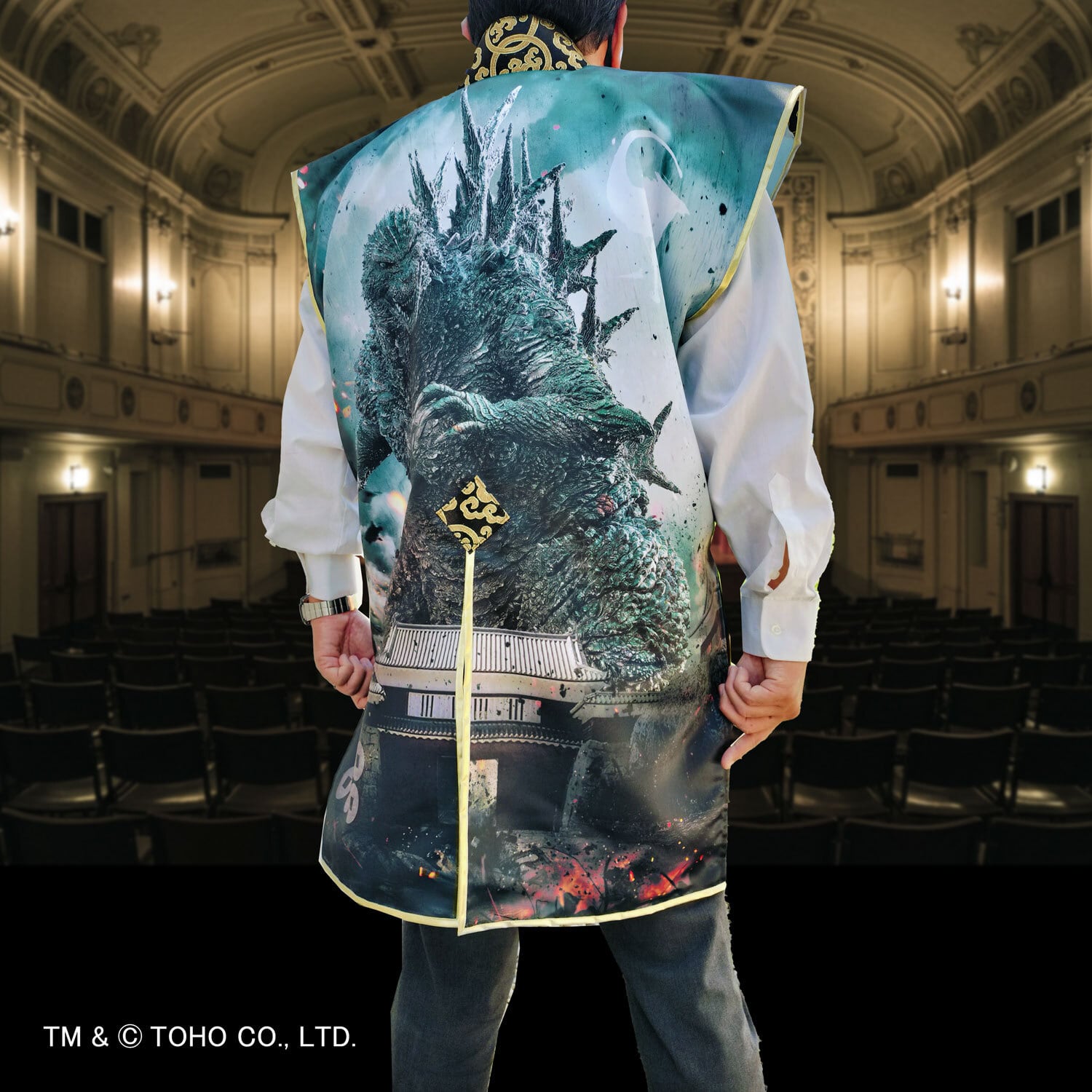 This Godzilla 1.0-designed jinbaori was produced and sold as a collaboration item during the “The DNA of Tokusatsu in Shinshu Ueda” exhibition held at Cultural hall"Santomuse" in Ueda City in the summer of 2024. It’s the perfect piece not only for Godzilla fans but also for anyone who wants to enjoy cool Japanese-style fashion with a jinbaori. It’s made of 100% polyester, which is lightweight and smooth to the touch.